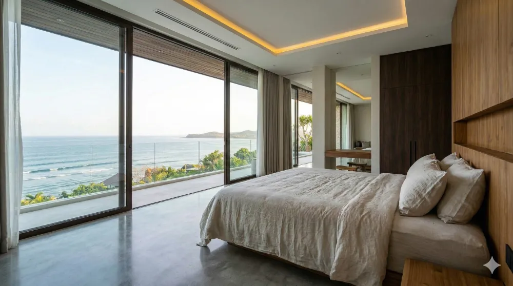 Experience unparalleled luxury at Villa Kuta, a masterpiece of contemporary tropical architecture perched on the pristine cliffs of South Lombok. This villa seamlessy blends indoor and outdoor living with its expansive open-plan layout, floor-to-ceiling glass walls, and organic materials sourced directly from the island.